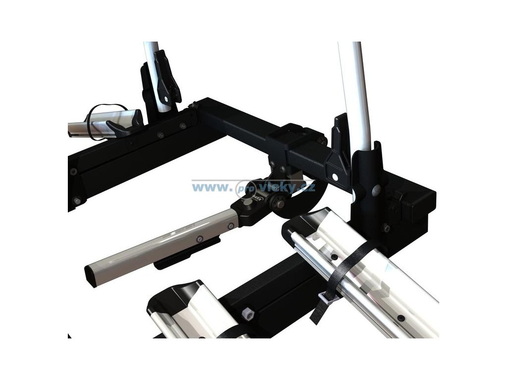 Nosič strednej triedy v rade nosičov kolies Trip. Jednoduchá montáž a demontáž. Sklápací mechanizmus a zamykanie.
