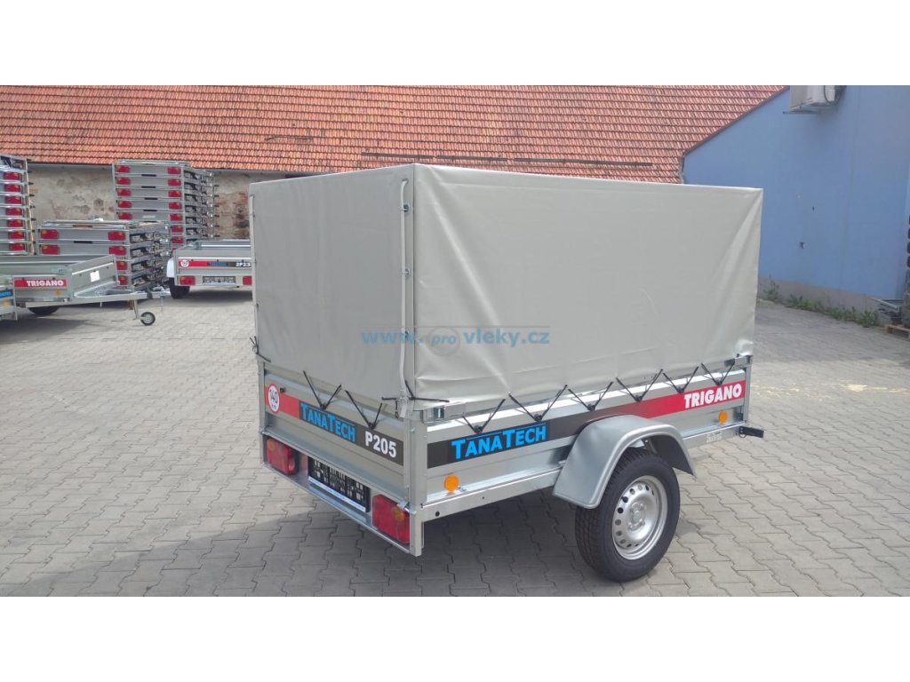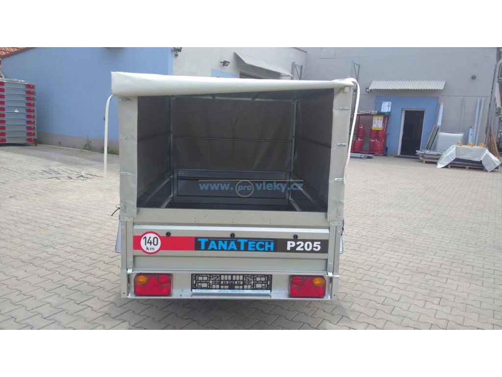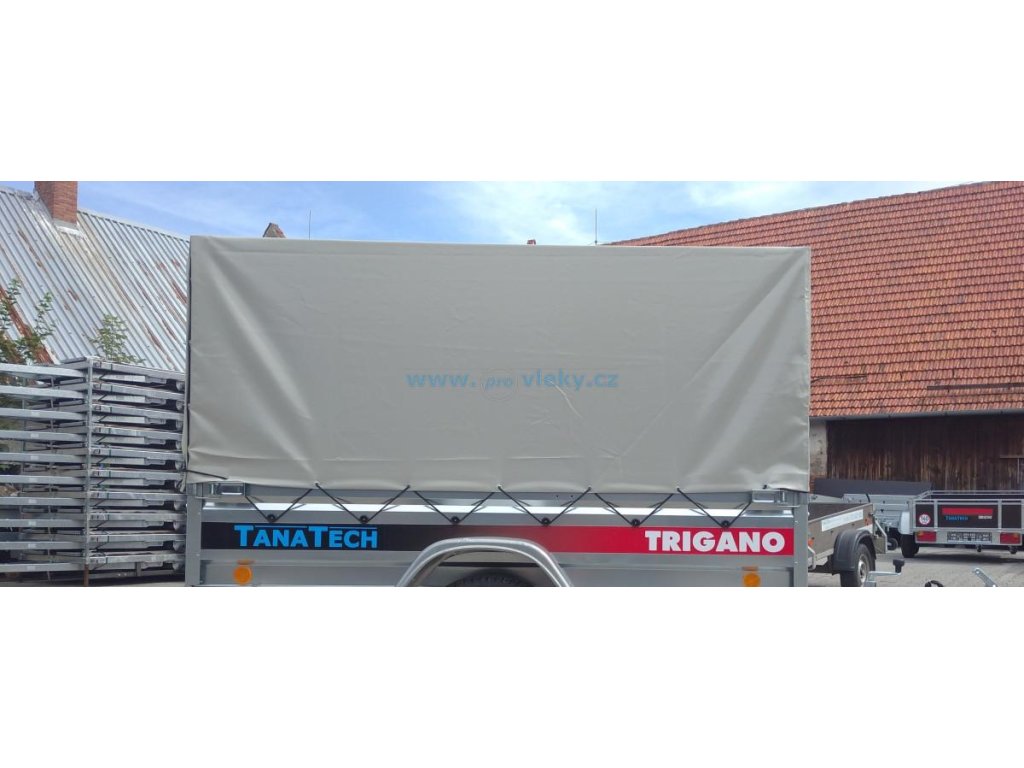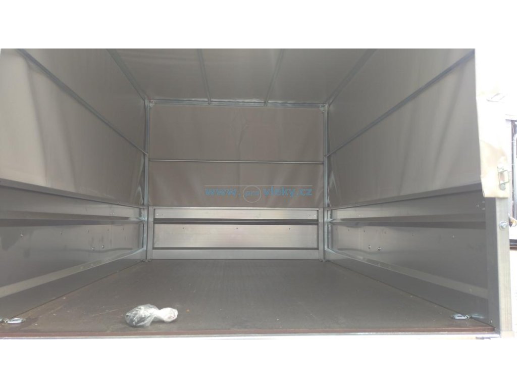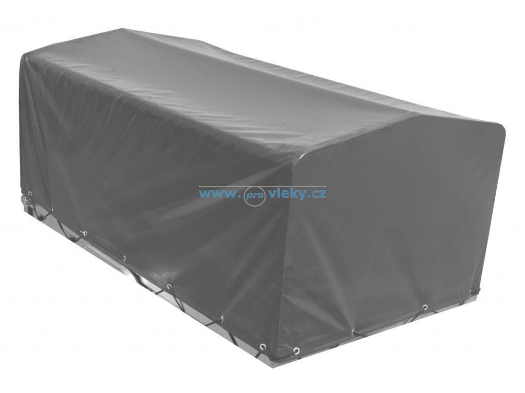 Kvalitná pevná plachtovina šedej farby. Otváranie zo zadnej strany