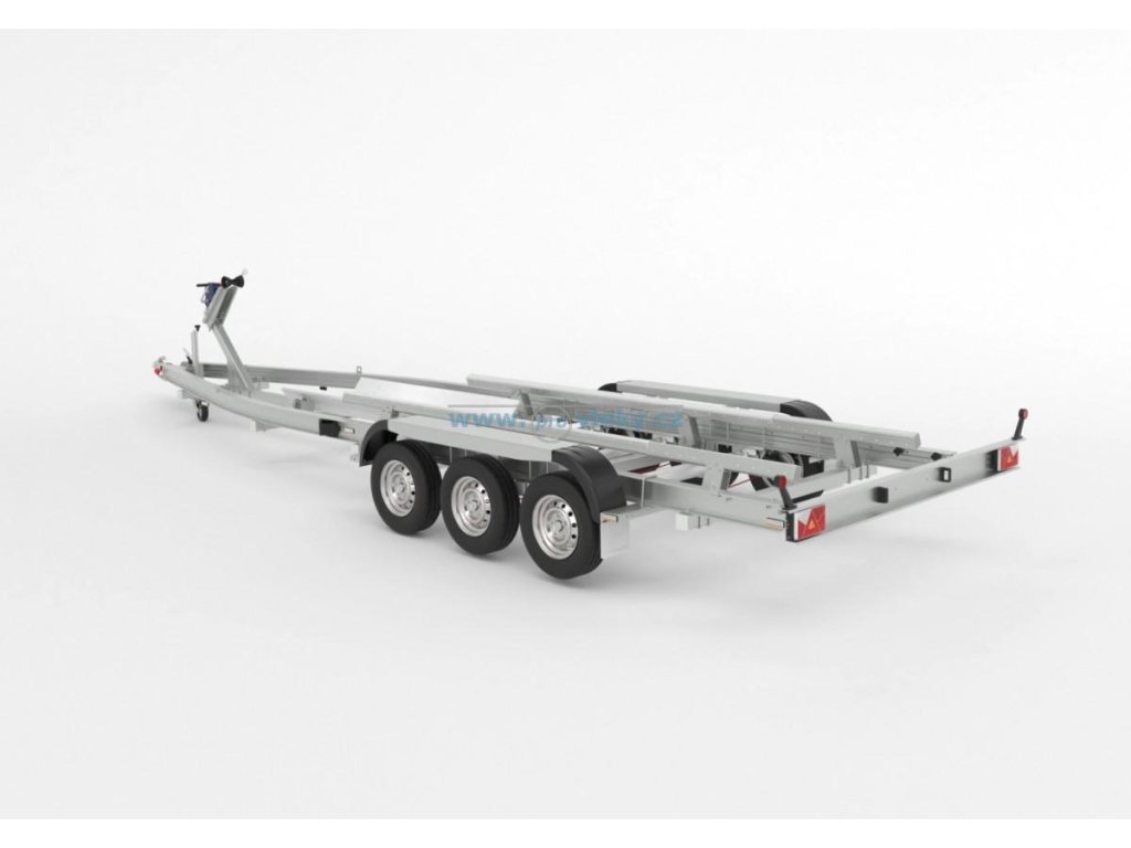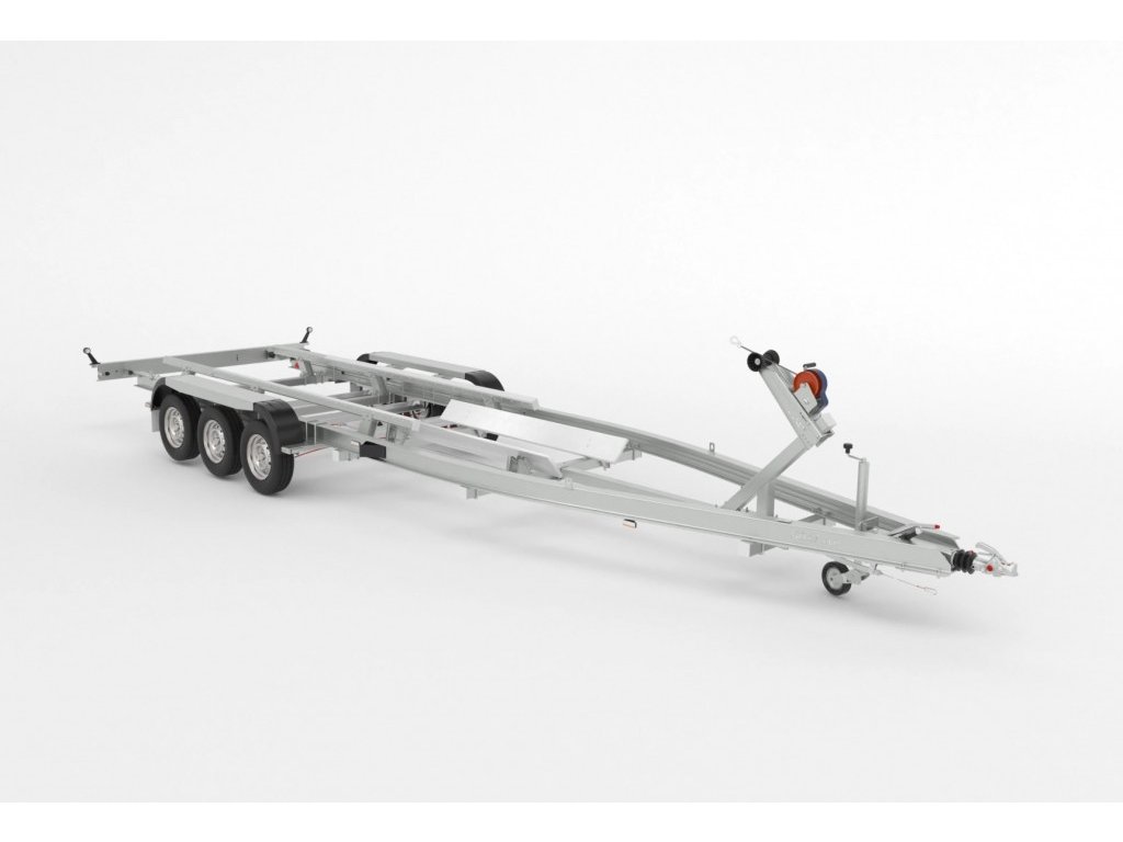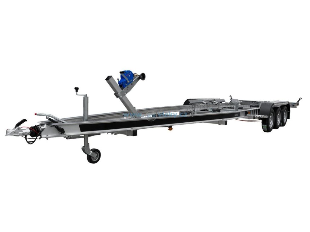 - Náprava, podpery, zadné koryto a oje je možné posúvať na nájdenie optimálnemu posadeniu lode a ťažiska prívesu pri naložení.