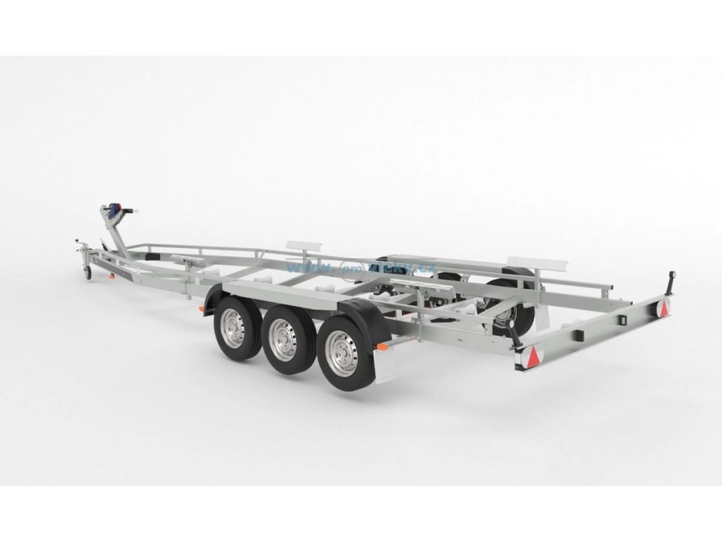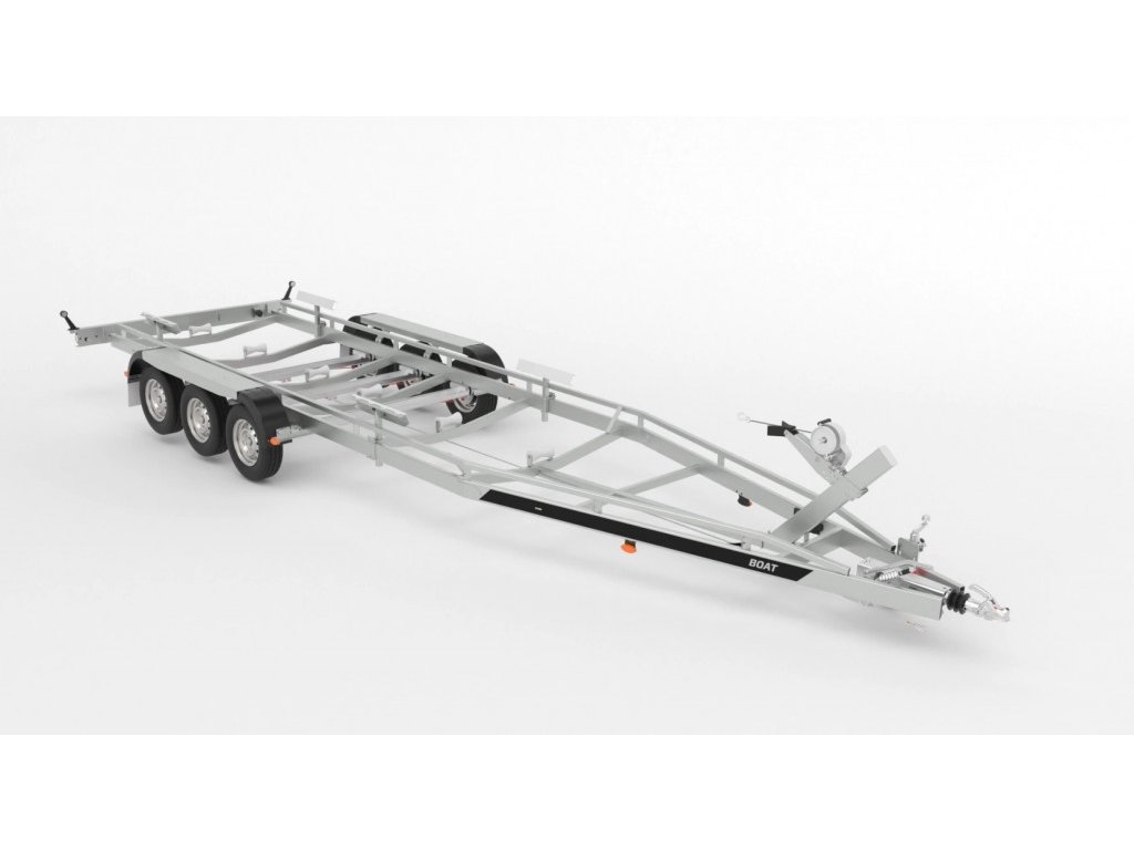 - Náprava, podpery, zadné koryto a oje je možné posúvať na nájdenie optimálnemu posadeniu lode a ťažiska prívesu pri naložení.