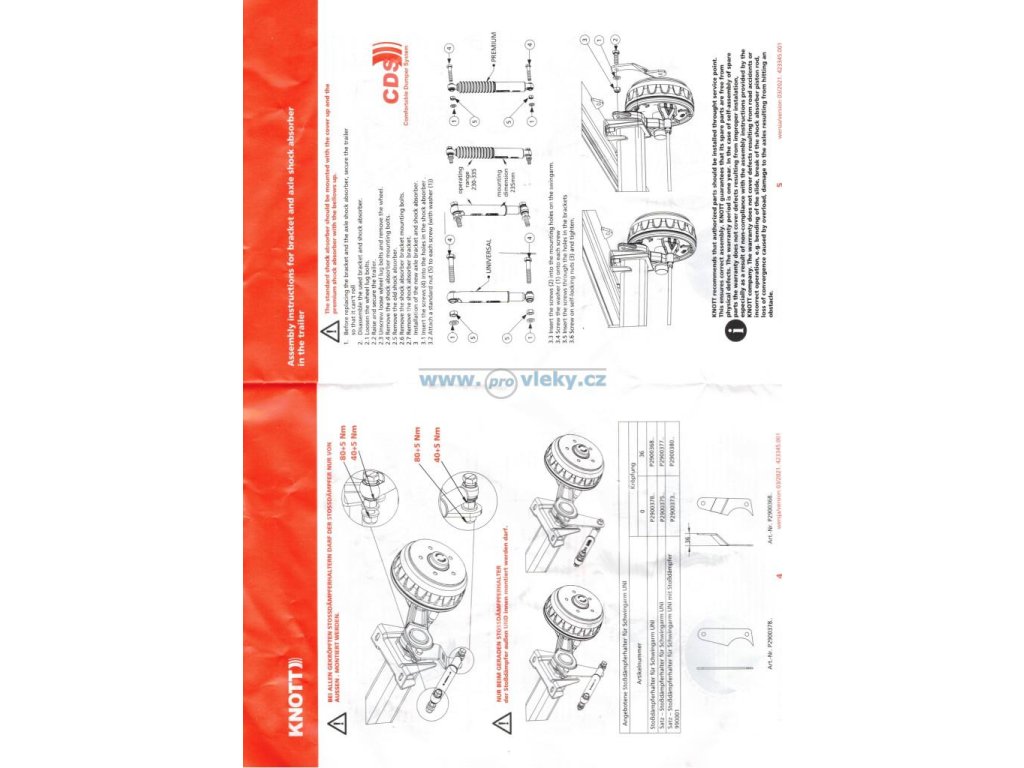 Originálna univerzálna sada tlmičov s držiakmi firmy Knott. Tlmič nárazov je vhodný pre všetky brzdové nápravy Knott s okom na ramene. Prevádzkový rozsah 750-1800 kg. Celková dĺžka tlmiča je 335 mm, priemer montážnych otvorov 12. S tlmičmi Knott bude cesta s prívesom ešte príjemnejšia a pohodlnejšia.