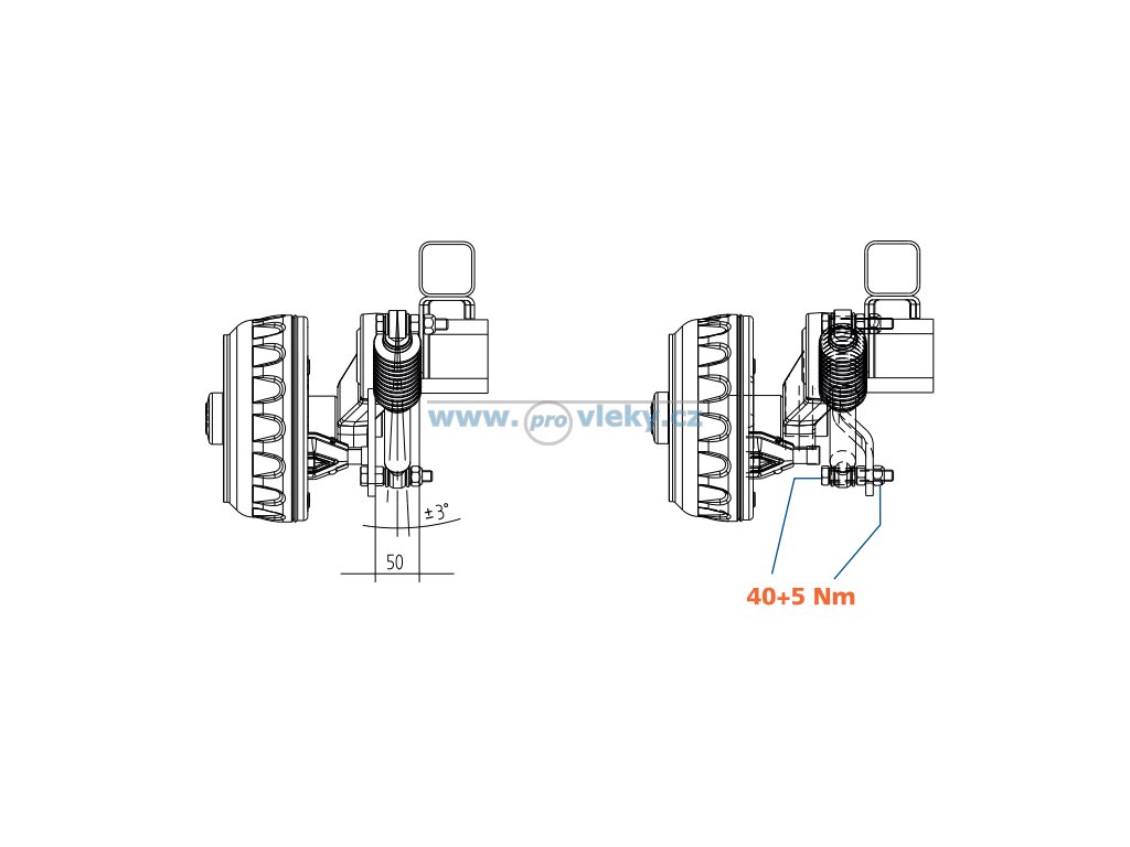 Tlmiče s držiakmi náprav pre nápravy KNOTT so zaťažením až do 1800kg na nápravu (3500kg v dvojnáprave)