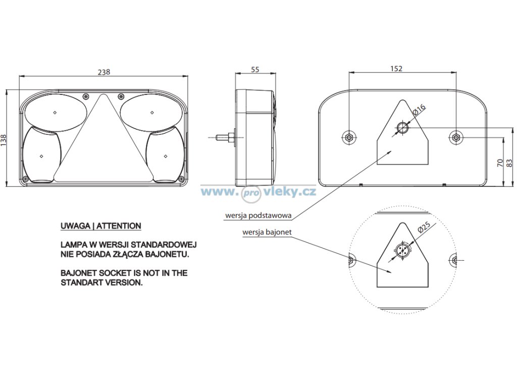 vhodný pre prívesy s dĺžkou korby do 3m s predným osvetlením