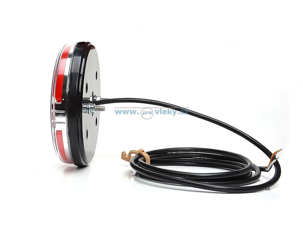 Krásna guľatá zadné LED svietidlo na prívesy, návesy a iné vozidlá. Pozičný časť je umiestnená po obvode s tzv. Neónovým efektom, ktorý je príjemný a neagresívny pre oči. Smerová časť je tvorená stredovým pruhom. Brzdová časť je tvorená dvoma pruhmi medzi SMEROVKY. Tvar umožňuje pravoľavou montáž.