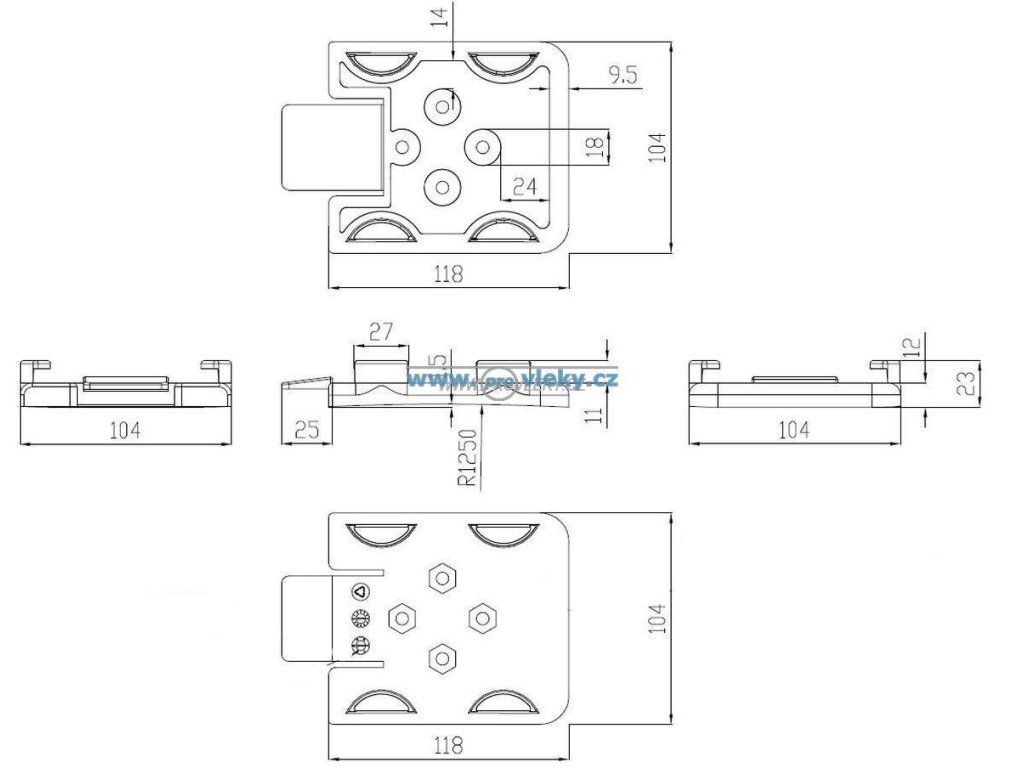 - Držiak klinu k nanýtování alebo naskrutkovanie na príves.